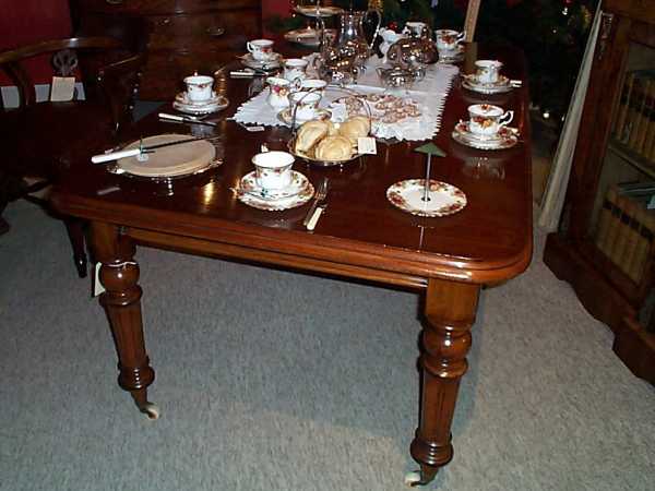 A Victorian mahogany wind out dining table with one extra table leaf, 69" long by 40" wide, having a good quality 'Joseph Fitter' winding mechanism and original china castors.