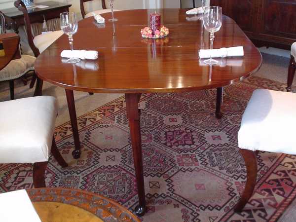 A large mid 18th century mahogany drop leaf dining table on pad feet.