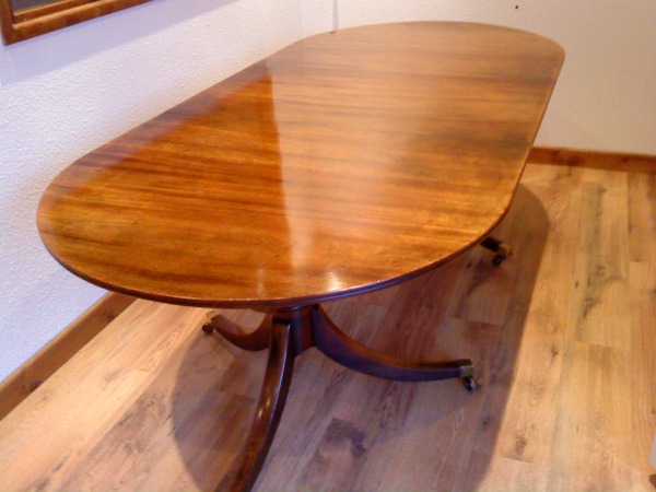 A very good quality Georgian revival twin pedestal dining table to comfortably seat eight people with a beautiful light and mellow colour, 90 inches long (7 feet and 6 inches), 42.5 inches wide and 29 inches high.