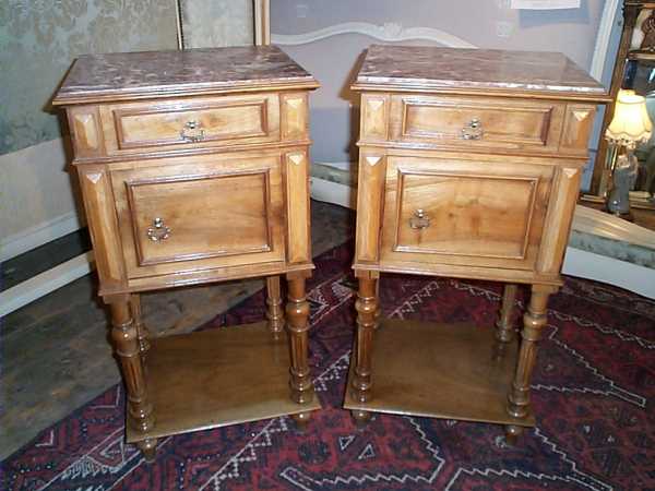 A nice pair of French bedside cabinets, c1880, with marble tops.