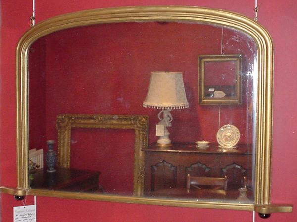 Victorian gilt framed over mantel mirror with original 'silvered' glass plate and ceramic feet, in good condition, 43" wide x 32" high.