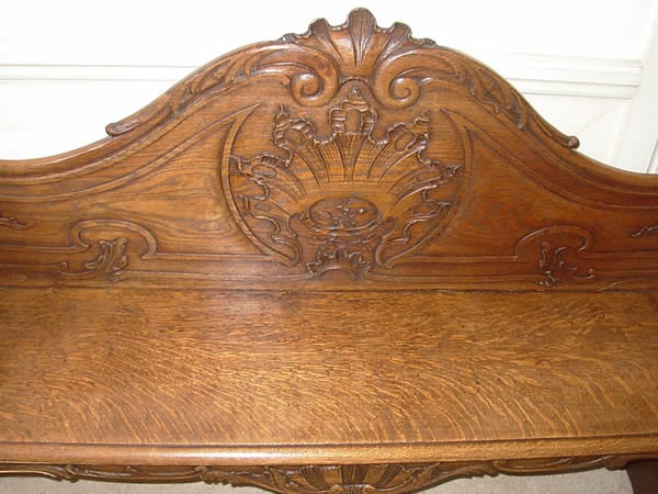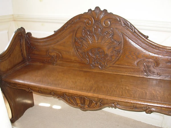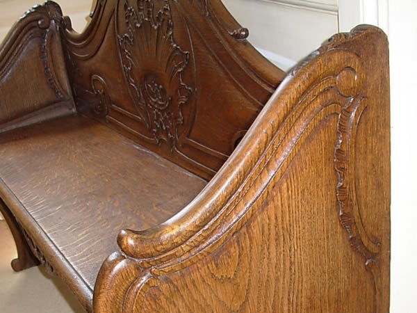 Beautiful carved oak bench of nice small proportions. Attractive carving to back, apron and sides. Ideal for hallway or conservatory. Late 19th century. Measures 40cm high by 129cm wide by 39cm deep.