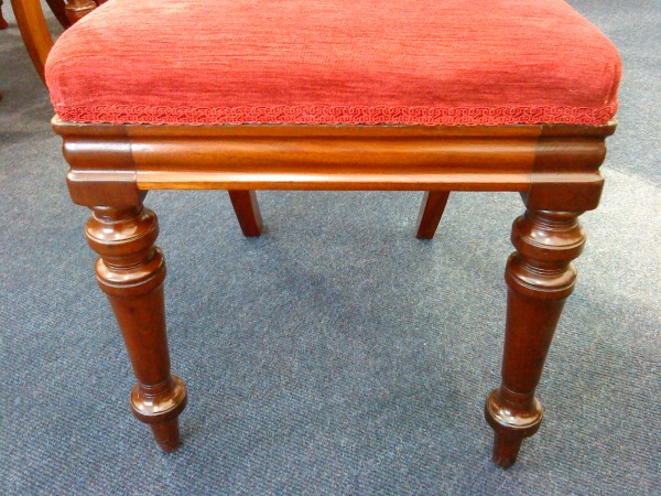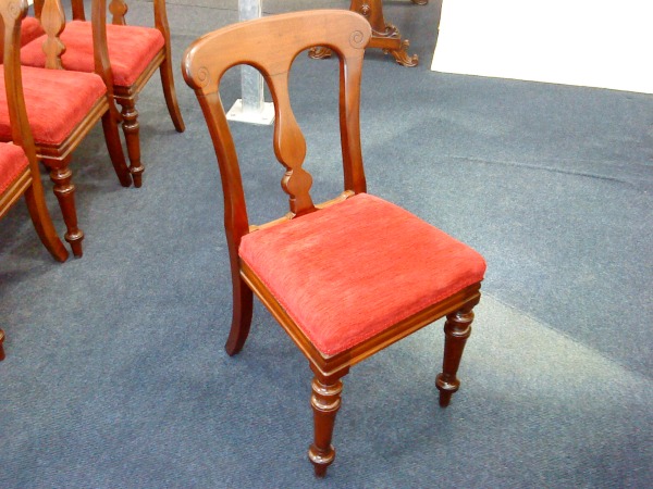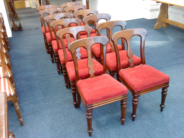A large set of twelve late Victorian mahogany dining chairs, c1880, with upholstered seats. Chair height TBA inches, seat height TBA inches and seat width TBA inches.