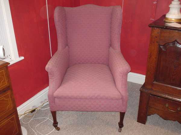 Very comfortable Edwardian wingback armchair, on castors, c1910.