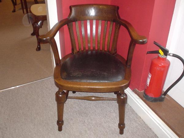 A very comfortable oak office chair with stuffed seat in excellent restored condition. A classic 'Thames Valley' design, made in the Wycombe area in the 1930's.