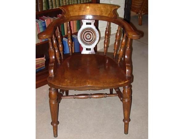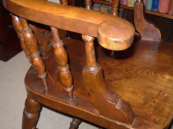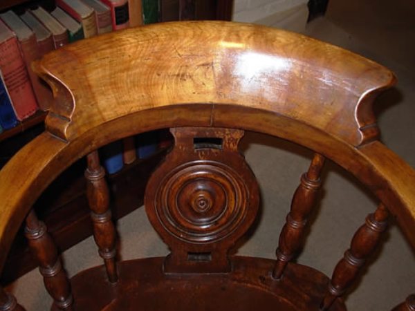 A Victorian elm smokers bow armchair with a lovely rich colour, height 32 inches, width 25 inches and depth 20.5 inches.