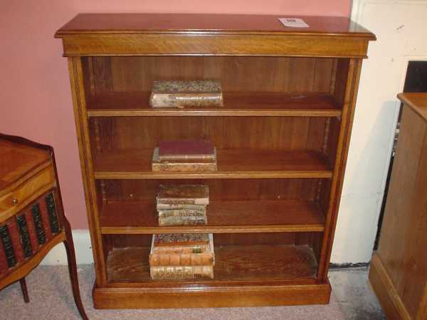 An Edwardian oak open bookcase with three adjustable shelves, recently restored, Circa 1910.
