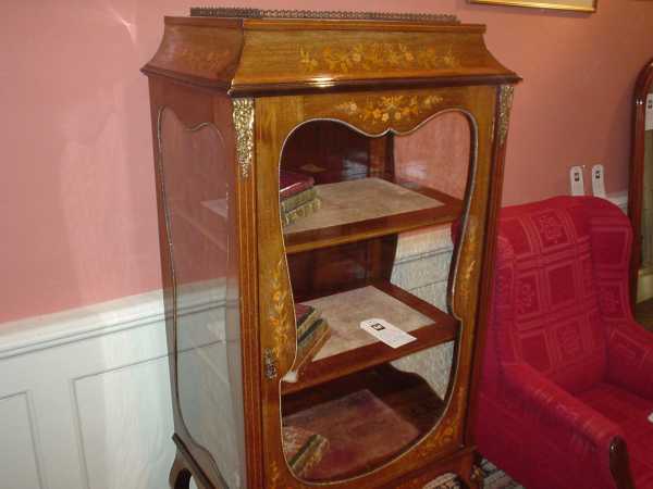 A fabulous late 19th Century mahogany Vitrine (display cabinet) in the French style with beautiful floral marquetry inlays and ormolu decoration.